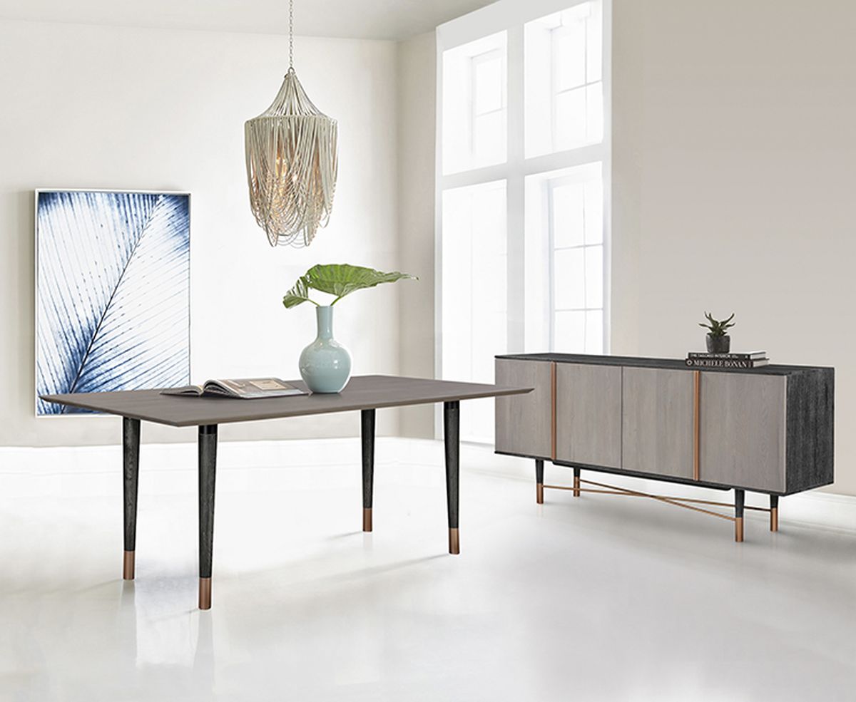 Armen Living Turin Rustic Black Brushed Dining Table and Sideboard